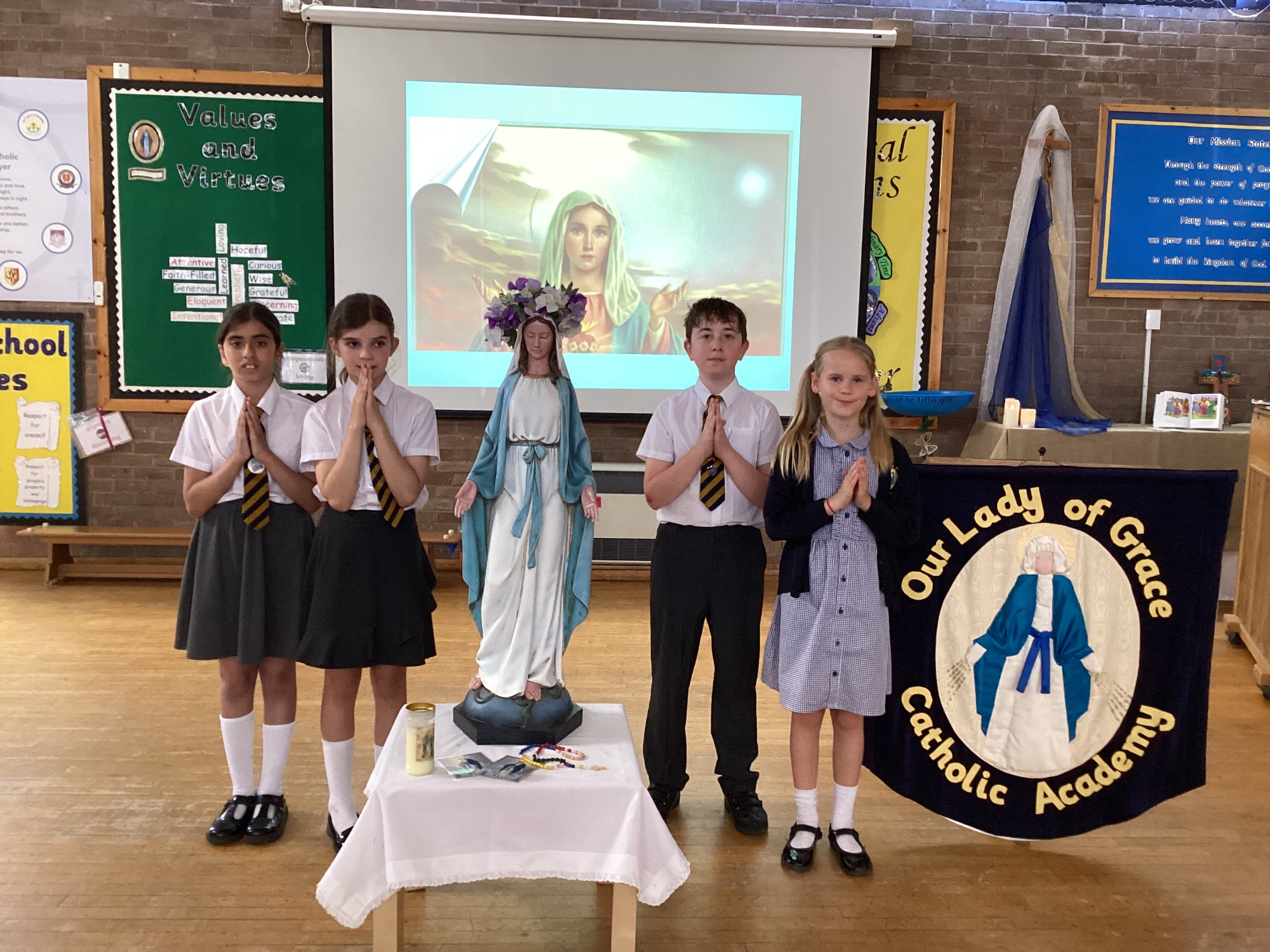 The Rosary is a meditative prayer that reflects upon the life, ministry, and death of Jesus and also on His Blessed Mother. As we repeat the familiar prayers, we allow our minds to think about the lives of Jesus and Mary here on earth – a mystery. Today, all of the children and staff at Our Lady of Grace were led by our Chaplaincy Team and regular members of our weekly Rosary club where we joined One Million Children around the world praying the Rosary for unity and peace. It was time spent together in prayer and reflection together.