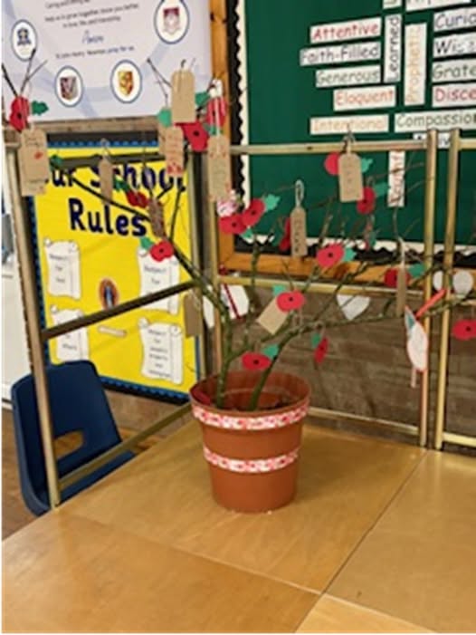 Our Remembrance Tree stands as a sacred space where we pause to honour and pray for those who have gone before us. Each poppy placed upon its branches represents a loved one we hold dearly in our hearts, reminding us of God’s promise of eternal life.